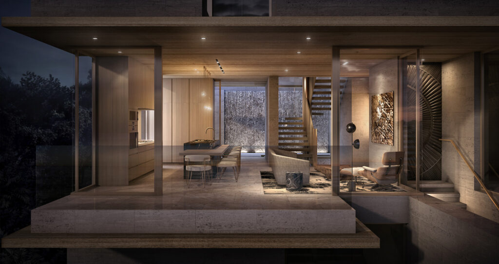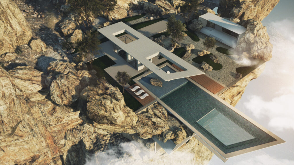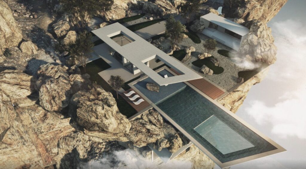 View VideoWe custom designed a three level house that is set into a real cliff located in Norway. The first level is titled Dream, an outdoor environment where you can swim in a pool that cantilevers out over the cliff, chill in the zen garden, or walk to a pavilion to watch video content. You then take an elevator down into the second level that includes a kitchen, living, bedroom, & bathroom. Play is the most subterranean level that includes a golf simulator, car storage garage, billiard room, and a plank to walk out off the cliff. The overarching concept is that this VR environment can be sponsored/hosted by different clients to host meetings, have private parties or events, incorporating NFTs, and showcasing products as needed. The Stash House is just the first small piece of what will become a much larger metaverse (or what they refer to as TrooVRS).