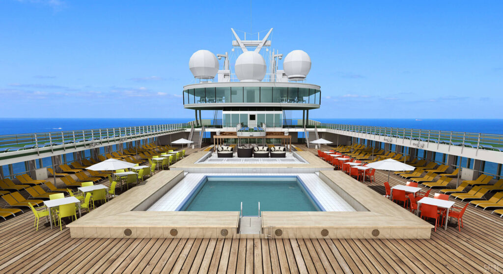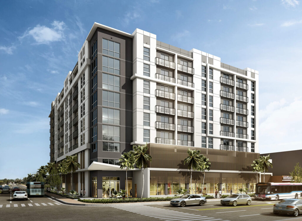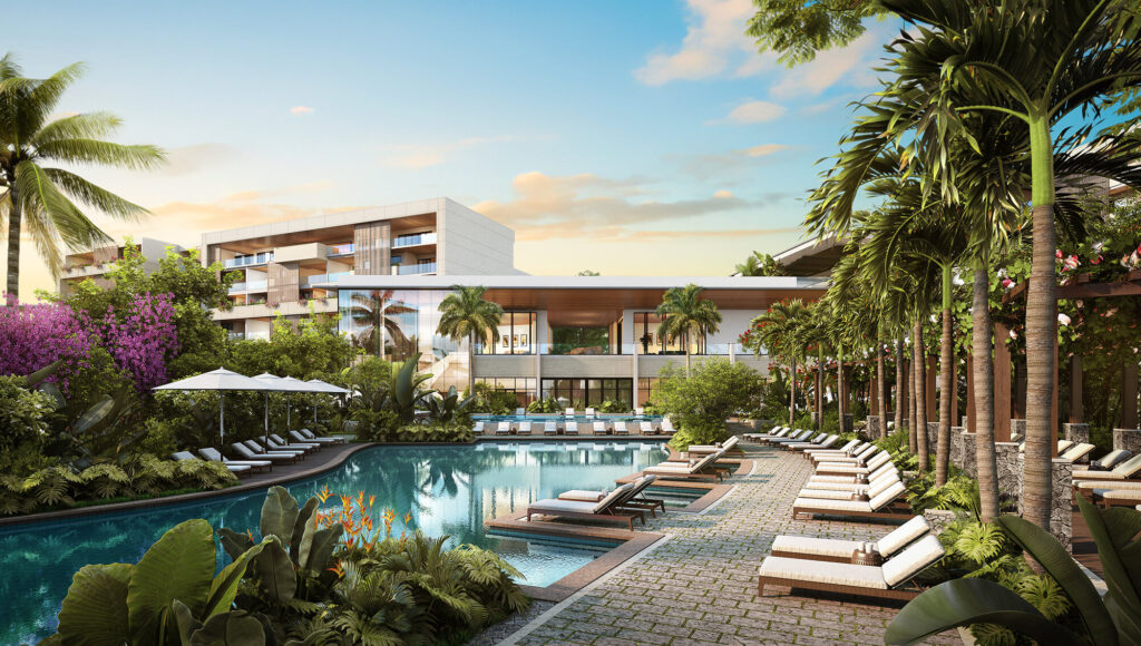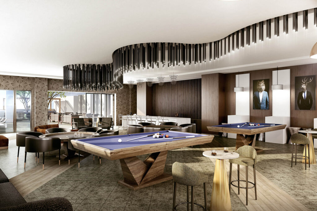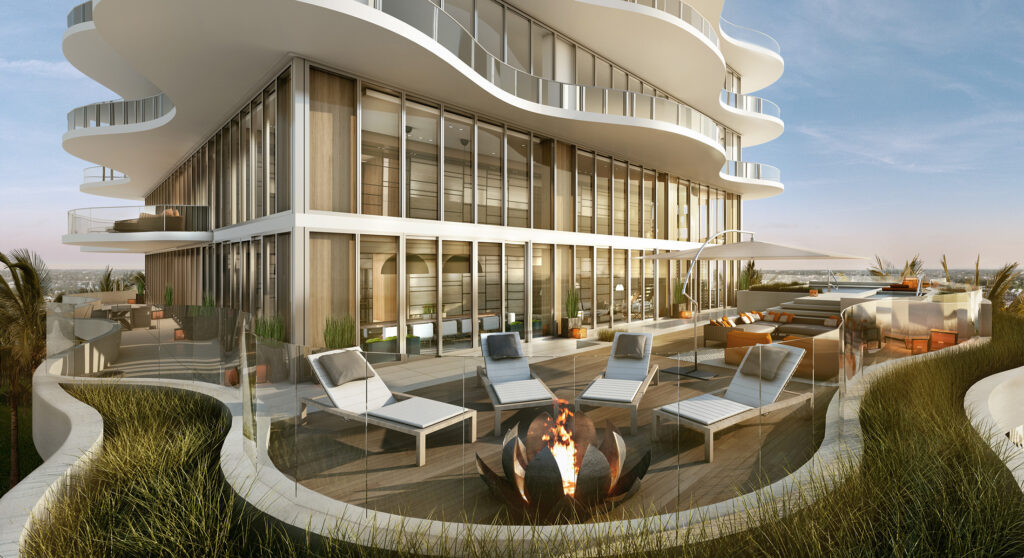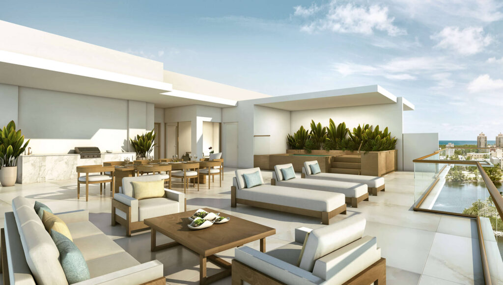 Pool courtyard that resides on the third level of a high end condo project in North Miami Beach.