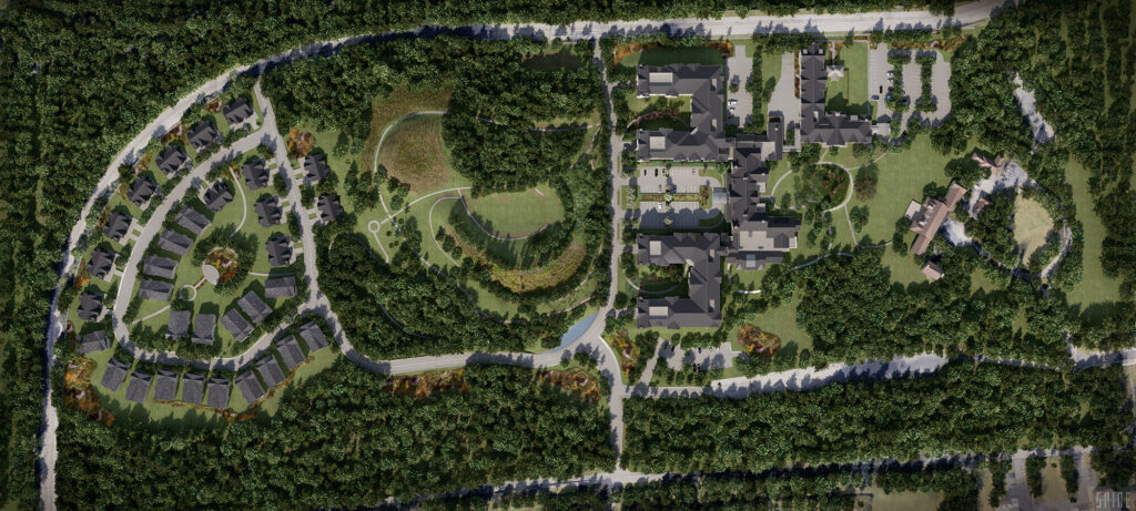 Senior living community located on a college campus 30 miles from New York City in suburban Westchester County. This is a tour of the 40-acre property/landscaping, the central park, & exteriors of all buildings (ALF, ILF, villas).
