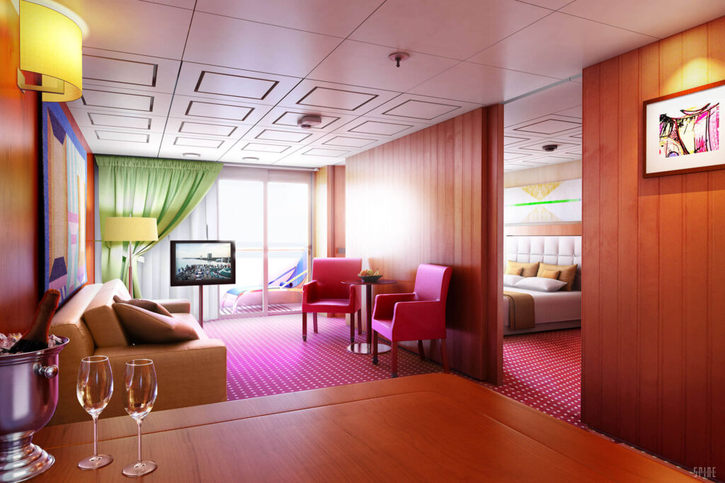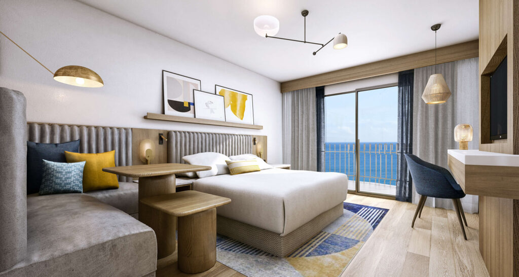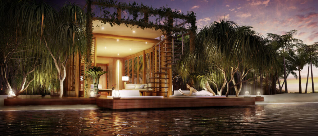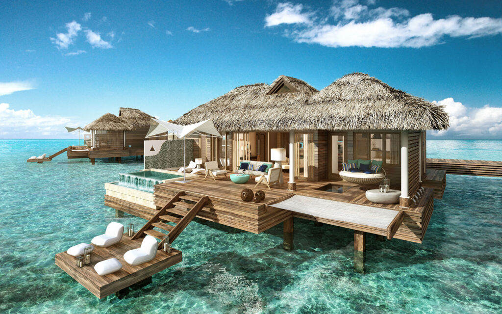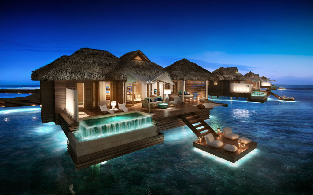 Reminiscent of a Tahiti–style bungalow, this villa has a floating water hammock, infinity edge pool, private glass floor, and a private boat. We delivered an immersive journey of Sandals very finest offering within their Royal Caribbean resort.