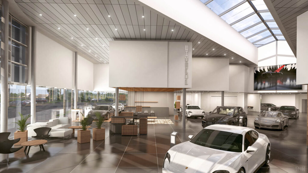 In four weeks, the SPINE team constructed three dealership locations which involved 3D modeling, rendering, camera matching, & animation. We also rented a Porsche Taycan, secured permits to block off certain roads, hired a professional driver, assisted with storyboarding, handled all film production (both ground & aerial), rented/operated the camera crane, and handled all post production.